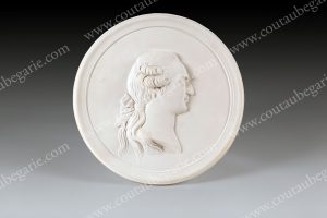 LOUIS XVI, roi de France (1754-1793). Médaillon de forme ronde en biscuit représentant un profil du souverain la tête tournée vers la droite Travail français du XXe siècle. Diam. : 23 cm. 2