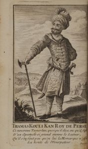 [CLAUSTRE (André de)]. Histoire de Thamas Kouli-kan, roi de Perse. À Paris, chez Briasson, 1743. In-12, veau époque, dos à 5 nerfs, pièce de titre fauve, caissons ornés (coiffe sup. arrachée, frottements, coins émoussés, mouillure au...