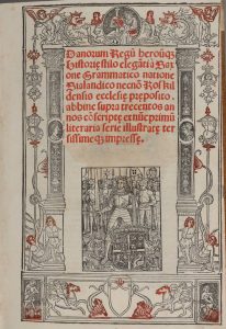 [Post-incunable]. SAXO GRAMMATICUS. Danorum Regu[m] herou[m]q[ue] histori[a]e : stilo elega[n]ti a Saxone Grammatico ... abhinc supra trecentos annos co[n]script[a]e et nu[n]c prim[um] literaria serie illustratae terssissimeq[ue] impress[a]e. [Au...