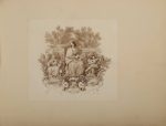 - Bas-relief d'un Bacchus à la grappe de raisin enlevant une muse. Mine de plomb et aquarelle. Signé. 28,6 × 40,2 cm.
