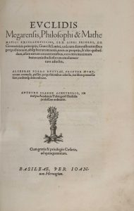 [Livre illustré du XVIe s.]. EUCLIDE ; SCHEUBEL (Johann). Euclidis Megarensis, Philosophi et Mathematici excellentissimi, sex libri priores, De geometricis principiis, Græci & Latini, unà cum demonstrationibus propositionum, absq[ue] literarum...