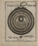 Cet exemplaire, en vélin doré, a été enrichi à l'époque de la reliure de 14 (sur 15) grandes planches, publiées après l'ouvrage et destinées à la compléter. Elles ont été éditées par P. Fürst, probablement vers 1620. (VD17 12:165728N, nous laisse supposer que cette suite de 15 grandes gravures n'a pas été insérée dans l'édition, mais publiée à part, puisqu'un seul des exemplaires localisés la contient ; en outre, on la trouve complète, conservée séparément au Département des Cartes et Plans de la BnF, cote GE FF-13045). Parmi ces planches se trouve une importante carte du monde centrée sur le Pôle nord (Shirley 282), ici accompagnée d'une figure manuscrite de l'époque.