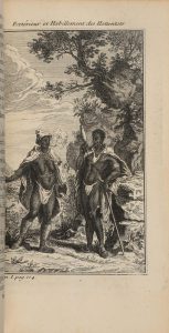 Seconde édition de la traduction française de cette description de l'Afrique australe, qui fut longtemps le seul ouvrage un peu détaillé sur cette contrée ; il renferme notamment la première ethnographie des Hottentots. L'ouvrage est orné de cinq cartes et d'une vue dépliantes, ainsi que de planches qui représentent l'art de vie des Hottentots, auxquels l'auteur consacre la majeure partie du premier tome ; costumes, scènes de chasse et d'agriculture, cérémonies, etc. Le second tome s'intéresse à la topographie de la région, à la flore et aux ressources minières diverses ; Le troisième tome est consacré aux espèces animales du Cap, avec des planches représentant le " vrai " rhinocéros, l'âne sauvage, le buffle, le "tigre", le poisson torpille, etc ; une planche figure la capture des élans et une autre des babouins pillant un jardin.