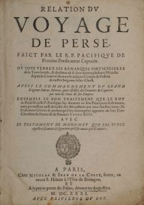 PACIFIQUE DE PROVINS (le père, capucin). Relation du voyage de Perse faict par le R. P. Pacifique de Provins,... où vous verrez les remarques particulières de la Terre saincte... Aussi le commandement du grand seigneur sultan Murat… avec le...