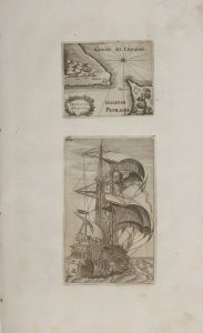 Curieux ouvrage peu commun qui s'ouvre sur une histoire du monde (première partie), puis propose une description amplement illustrée de l'Empire Ottoman, des régions du Caucase (Pont Euxin), et de la Grèce. L'illustration se compose de 33 (sur 34) planches offrant chacune 2 vignettes gravées sur cuivre (il manque ici une pl. montrant 2 animaux), soit 66 illustrations : cartes, vues de villes et d'édifices, personnages, animaux. Titre général et titre de la 3e partie " Trinum marinum… " en rouge et noir.