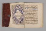 - [Islam]. Recueil de citations coraniques (commentaire ?). Manuscrit, papier. Petit In-4 sous reliure orientale bordeaux à empiècements bleus, fatiguée et frottée.