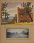 demi-chagrin noir à coins, dos à 4 nerfs, titre doré. 60 + 54 f. de carton montés sur onglets, offrant le texte manuscrit accompagné de 640 illustrations ; parmi celles-ci se trouvent 39 aquarelles originales, la plupart à pleine page, le reste étant constitué de photographies originales, de quelques dessins au crayon et de quelques cartes postales. En outre, une grande aquarelle forme un frontispice au volume 2 ; et le volume 1 est précédé d'une carte manuscrite de l'itinéraire suivi.