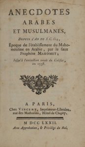 [HORNOT (Antoine), LA CROIX (Jean-François de)]. Anecdotes arabes et musulmanes de l'an de J.C. 614, époque de l'établissement du Mahométisme en Arabie, par le faux prophète Mahomet, jusqu'à l'extinction totale du Califat en 1538. Paris, chez...