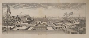 Brillant diplomate danois, Georg Hoest (1734-1794) séjourna au Maroc dès 1753, contribuant à la signature d'un traité de paix entre son pays et le royaume du Maroc. Conseiller de la Compagnie royale dano-africaine de commerce, il devint dès le début des années 1760 un familier de la cour du sultan. L'illustration inédite se compose de plans, de vues diverses, dont des bateaux, et notamment d'une belle vue de Marrakech.