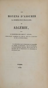 LETANG (général Georges-N.-M.). Des moyens d'assurer la domination française en Algérie. Paris, s.n., 1840. In-8, basane verte, dos lisse romantique, titre doré, plat estampé à froid et doré (frottements). Illustré de 2 cartes...