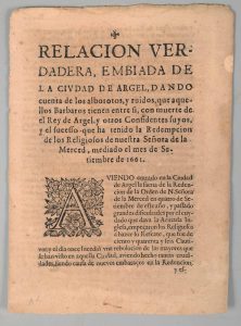 nuestra Señora de la Merced, mediado el mes de Setiembre de 1661. Zaragoça, Ian de Ybar, 1661. In-folio, [3] p.