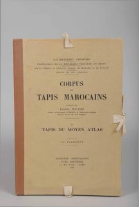 RICARD (Prosper). Corpus des tapis marocains. I : Tapis de Rabat. II : Tapis du Moyen Atlas. III : Tapis du Haut Atlas et du Haouz de Marrakech. IV : Tapis divers. Paris, librairie orientaliste Paul Geuthner, [vers 1925-1935]. 4 vol., en ff. sous 4...