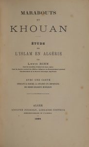 RINN (Louis). Marabouts et Khouan. Étude sur l'Islam en Algérie. Alger, Adolphe Jourdan, 1884. In-8, demi-basane verte, dos à 5 nerfs, auteur et titre doré (frottements, rares rousseurs éparses). Avec une carte indiquant la situation et...