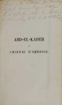 - [Recueil factice]. GRAND (Emile). Défense et occupation de la colonne d'Alger. Toulon, Aurel, 1837 [Suivi de] DUPUCH. Abd-El-Kader au château d'Amboise. Bordeaux, Emile Crugy, février 1849 [Suivi de]. BONNET (Adrien). Eloge de M. Lainé lu à la rentrée des conférences le 21 décembre 1844. Bordeaux, Henry Faye, s.d. Trois ouvrages en 1 volume in-8, demi-basane verte, dos lisse, titre doré (épidermures, mors sup. fendu, coins émoussés). Envoi sur un faux-titre.