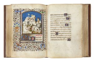 → Heures de la Croix, lacunaires de la Crucifixion entre les f. 123 et 124, et Heures du Saint- Esprit (f. 124r- 140r) ;