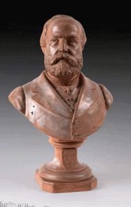 CHARRON A. (école française du XIXe siècle). Buste d'Henry V comte de Chambord (1820-1883). Terre cuite, signée sur la base et datée 1883, reposant sur un pied octogonal. Atelier Saint Hilaire, Poitiers. Petites usures du temps, bon état dans...