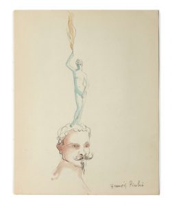 Un des 200 exemplaires sur papier pur fil Madagascar Lafuma (seul grand papier), celui- ci (n° 115, signé par l’artiste) accompagné d’un beau dessin original signé de Francis Picabia, au crayon noir rehaussé à l’aquarelle, sur une feuille volante de papier vélin (24,1 x 18,8 cm).