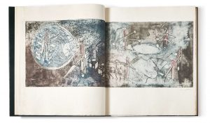 Édition originale de poèmes, exclamations et autres mots- clés de Roberto Matta ornée de 22 eaux- fortes et aquatintes originales en couleurs, à l’exception de 4 vignettes en noir, dont 10 à pleine page et 3 à double page.
