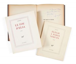 • Le Fou d’Elsa : poème. Paris, Gallimard, 1963. in-8 broché, partiellement coupé. Édition originale.