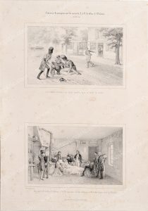 4 h du soir dans l'arrière boutique de M. Cordier, épicier route de la Révolte », « La famille royale ramenant à Neuilly, le corps de la S.A.R. le duc d'Orléans, le 13 juillet 1842 », « Après l'absoute, et au milieu de la plus vive émotion... », « Arrivée à Notre-Dame des restes mortels de S.A.R. le duc d'Orléans, « Le catafalque et chapelle ardente de S.A.R. le duc d'Orléans, dans l'église Notre-Dame de Paris ». Fait à Paris, vers 1842/1845. Petites rousseurs, mais bon état général. Formats divers.