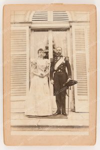 prince Jean d'Orléans avec sa cousine la princesse Isabelle d'Orléans, en 1898. Tirage argentique d'époque, monté sur carton. En l'état. H. : 34 cm - L. : 22, 5 cm.