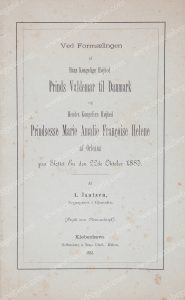 MARIE, princesse de Danemark (1865-1909). Programme du mariage célébré au château d'Eu, le 22 octobre 1885, entre la princesse Marie d'Orléans (18651909) et le prince Valdemar de Danemark (1858-1939). Format in-8, 12 pages, couverture...