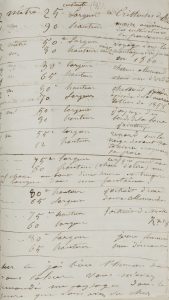 [Printemps 1860]. « J’ai tellement la tête bourrée de bêtises et de peinture que je ne sais plus ce que je fais. J’ai oublié de vous mettre les prix. Je cherche à vous envoyer tout un musée c’est-à-dire une colection de tableaux qui remplisse pour ainsi dire le cadre des différents genres que comporte l’art de la peinture. Je n’ai pas entierrement tout ce que je désirerais sous la main […] Pourtant il y aura un spécimen de chaque chose. Ainsi les cribleuses de blé tableau de mœurs ou genre, tableau de chasse à figures, d’automne, et d’été ; chevreuil nature morte, paysage de printemps qui est celui que je vais vous faire, ensuite portrait sérieux, qui peuvent être considérés comme portrait historique par leur manière d’être » :
