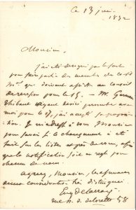 Eugène DELACROIX. L.A.S., 13 juin 1852 ; 1 page in-8.