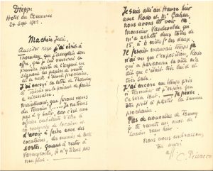 Camille PISSARRO (1831-1903). L.A.S., Dieppe 24 septembre 1902, à SA FEMME Julie PISSARRO ; 2 pages in-8.