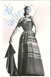 Josephine BAKER (1906-1975). PHOTOGRAPHIE signée ; carte postale noir et blanc (J’ai deux amours éditée par le domaine des Milandes).