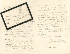 Hector BERLIOZ. L.A.S., 23 mai 1860, à Richard WAGNER, à Paris ; 3 pages in-8, enveloppe (timbre décollé).