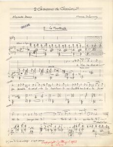 Marcel DELANNOY (1898-1962). MANUSCRIT MUSICAL autographe signé, Deux Chansons de Clarin, 1932 ; titre et 6 pages in-fol.