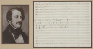 Gaetano DONIZETTI (1797-1848). MANUSCRIT MUSICAL autographe ; 1 page oblong in-4 (encadrée avec portrait).
