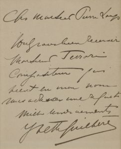 « Voulez-vous bien recevoir Monsieur Terrari compositeur qui vient en mon nom vous adresser une requête »…