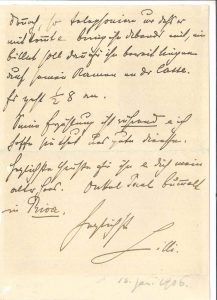 Lilli LEHMANN (1848-1929). L.A.S. « Lilli », [Grunewald (Berlin) 18.I.1903], au Dr Hans LINDAU, à Charlottenburg ; 2 pages in-8, enveloppe ; en allemand (traces de collage pour encadrement et petites déchirures).