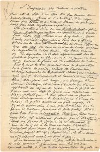 Georges MÉLIÈS. MANUSCRIT autographe, L’Impression des couleurs à distance, [octobre 1928] ; 4 pages in-fol. (fentes réparées).