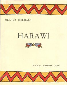 Olivier MESSIAEN. Harawi. Chant d’amour et de mort pour chant et piano (Alphonse Leduc, 1948) ; in-fol. de [5 ff]-100 p., couverture illustrée en couleurs, broché.