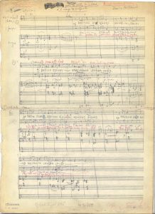 L’œuvre a été composée avec le texte en hébreu ; au-dessous, Milhaud a entièrement réécrit la partie de chant avec le texte en français (manuscrit autographe, au stylo bille bleu puis à l’encre noire).