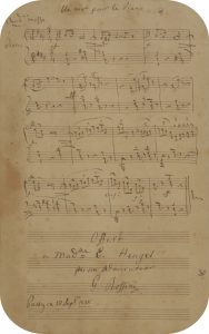 Petite pièce pour piano de 15 mesures marquée Andantino mosso, avec DÉDICACE à Mlle Eulalie HEUGEL :