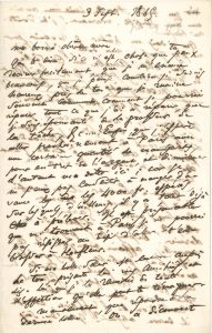 « je pense combien je suis heureux près de toi, […] je rumine souvent comment je pourrai réparer tout ce que j’ai à réparer, [...] je suis épouvanté de la grosseur de la tâche »… Il espère « aller prochainement à Paris avec une certaine quantité de manuscrits, pour en tirer de l’argent, et diminuer d’autant ma dette ici ; car je ne peux pas consentir à manger d’avance les 4000 fr. espérés, sur lesquels, d’ailleurs, il y a tant déjà à prélever ».