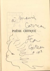 « à Maurice Carreau Jean Cocteau * 1948 », avec dessin d’une tête de profil.