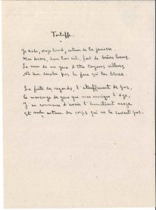 Le titre Tartuffe, figurant sur ce manuscrit, est devenu Tartufe, avec un seul f, dans l’édition définitive publiée chez Grasset en 1949.