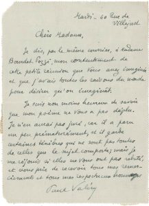 Il écrit à Mme BOURDET-POZZI pour lui dire son contentement de leur petite réunion. « Je suis non moins heureux de savoir que mon poème ne vous a pas déplu. Je n’en aurai pas juré, car il a paru un peu prématurément, et il garde certaines ténèbres qui ne sont pas toutes de celles que le sujet comporte »...