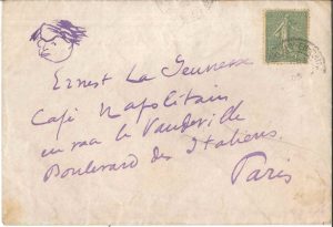 « Ernest La Jeunesse / Café Napolitain / en face le Vaudeville / Boulevard des Italiens / Paris » ;