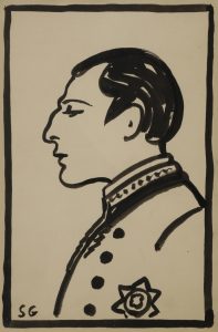 Sacha GUITRY. Tête d’homme, [ca 1905 ?]. Dessin original à l’encre de Chine, signé en bas à gauche des initiales. 28 x 18,5 cm.