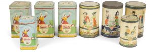 [Sacha GUITRY]. 8 boîtes métalliques publicitaires, [vers 1911]. Métal émaillé ; tailles diverses.