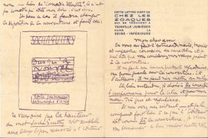 Il DESSINE la page de titre pour montrer que les caractères du nom Brunoff seront « moitié moins forts que ceux du nom Sacha », et le titre, « trois fois plus fort que mon nom »… Du reste, « Si cela vous était égal d’avoir simplement votre nom à la première page – ou mieux encore – derrière, ça arrangerait tout »…