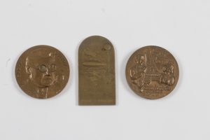 [Sacha GUITRY et Yvonne PRINTEMPS]. 3 MÉDAILLES en bronze. Aéroclub de Belgique / Madame Y. Printemps. Au revers : Première audition officielle de téléphonie sans fil Paris - Bruxelles 29 décembre 1921.