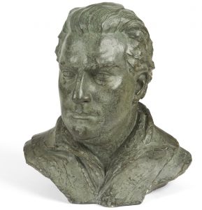 Paulo RÖTHLISBERGER (1892-1990). Buste de Sacha Guitry, [1926]. Sculpture en plâtre à patine verte (petits éclats). Hauteur : 43 cm.