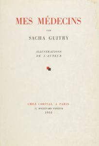 Sacha GUITRY. Mes Médecins. Illustrations de l’auteur (Chez Cortial, [Imprimerie Roger Dacosta], 1932). In‑4, broché.